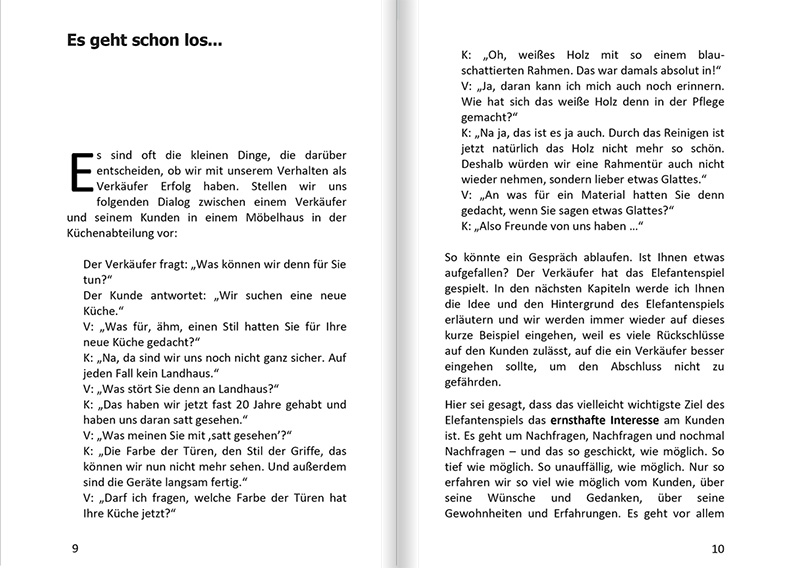 Das Buch "Elefantenfragen" hat mich weiterentwickelt. Weiterentwickelt deshalb, weil ich dem Kunden wieder mehr (intensiver) zuhöre. Das intensivere Zuhören, lässt mich die eigentlichen Wünsche & Ziele der Kunden besser realisieren. Besseres Realisieren & Umsetzen der Kundengedanken = mehr Abschlüsse. Dafür vielen Dank. Ich habe meine Abschlussquote definitiv erhöhen können. Ich werde das Buch definitiv weiterempfehlen.